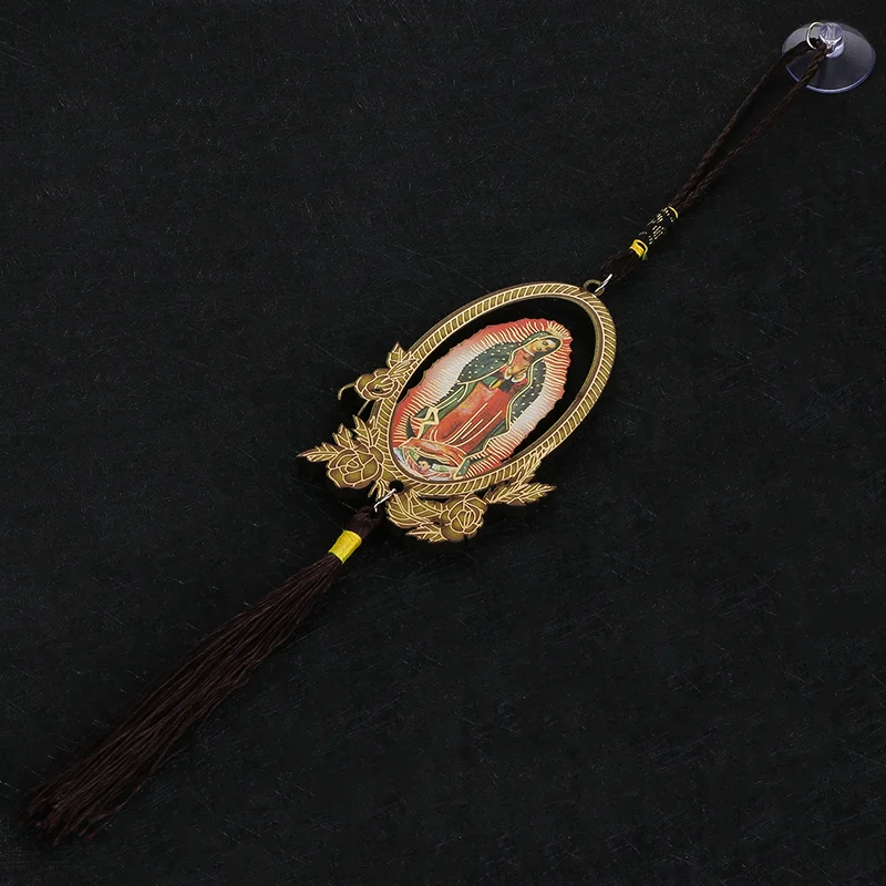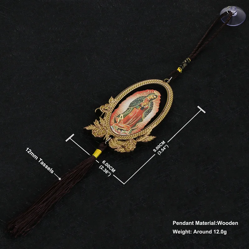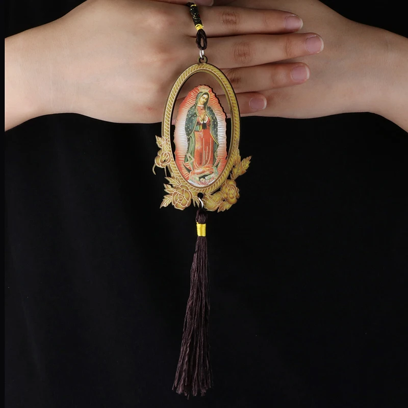 Our Lady of Guadalupe Wooden Pendant with Tassel – Christian Car Hanging Ornament, Keychain & Bag Accessory