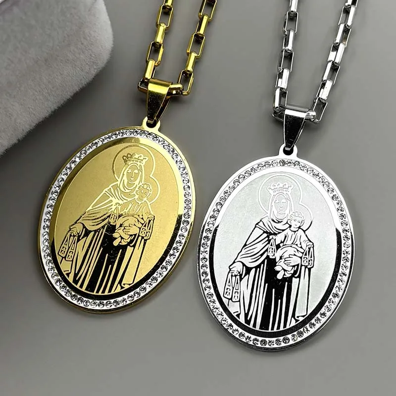 • Our Lady of Mount Carmel Medal Pendant – Gold–Silver Tone Stainless Steel Catholic Necklace for Men & Women