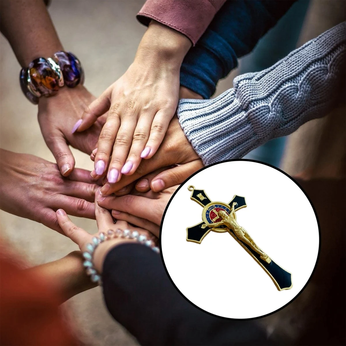 This sacred wall crucifix unites the Holy Cross of Our Lord Jesus Christ with the powerful Medal of Saint Benedict, one of the Church’s most revered sacramentals for protection, perseverance, and spiritual defense. Designed to be displayed with reverence in the home, prayer room, or workplace, it stands as a visible proclamation of faith in Christ’s victory over sin and evil.